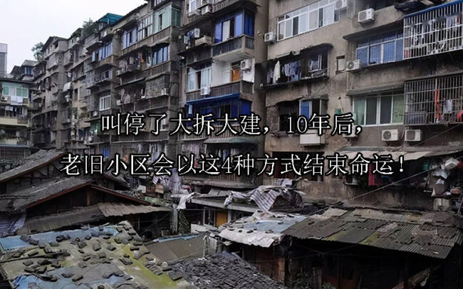 导读:10年后,老旧小区会以这4种方式结束命运:1、参与旧改,在原有基础上修缮。2、房子被拆,赶上最后一波棚改。3、社区居民共同集资重建。4、出于特殊原因,老旧小区被收归国有。 经过几十年的发展,现在…