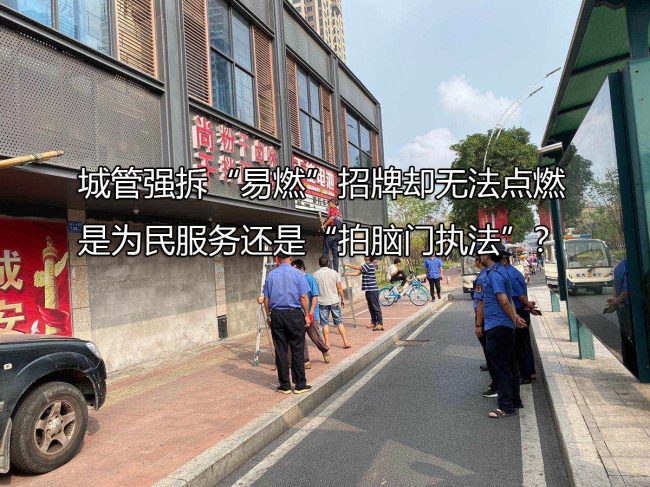近日,湖南邵阳洞口县黄桥镇一商户因“招牌易燃”被当地城管强拆了门头,理由是“未采用防火材料制作门头”,并试图点燃以证明其易燃性,但结果是无法点燃。这起事件引发了公众的关注和质疑,城管团队的行为也引…